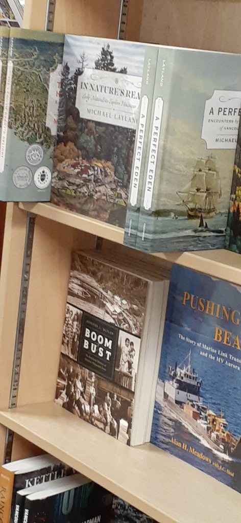 in good company at Tanner’s Books in Sidneyat Tsawwassen Ferry Terminal at Bolen Books in Victoria, with an instrument I did not use in the writing of this book!